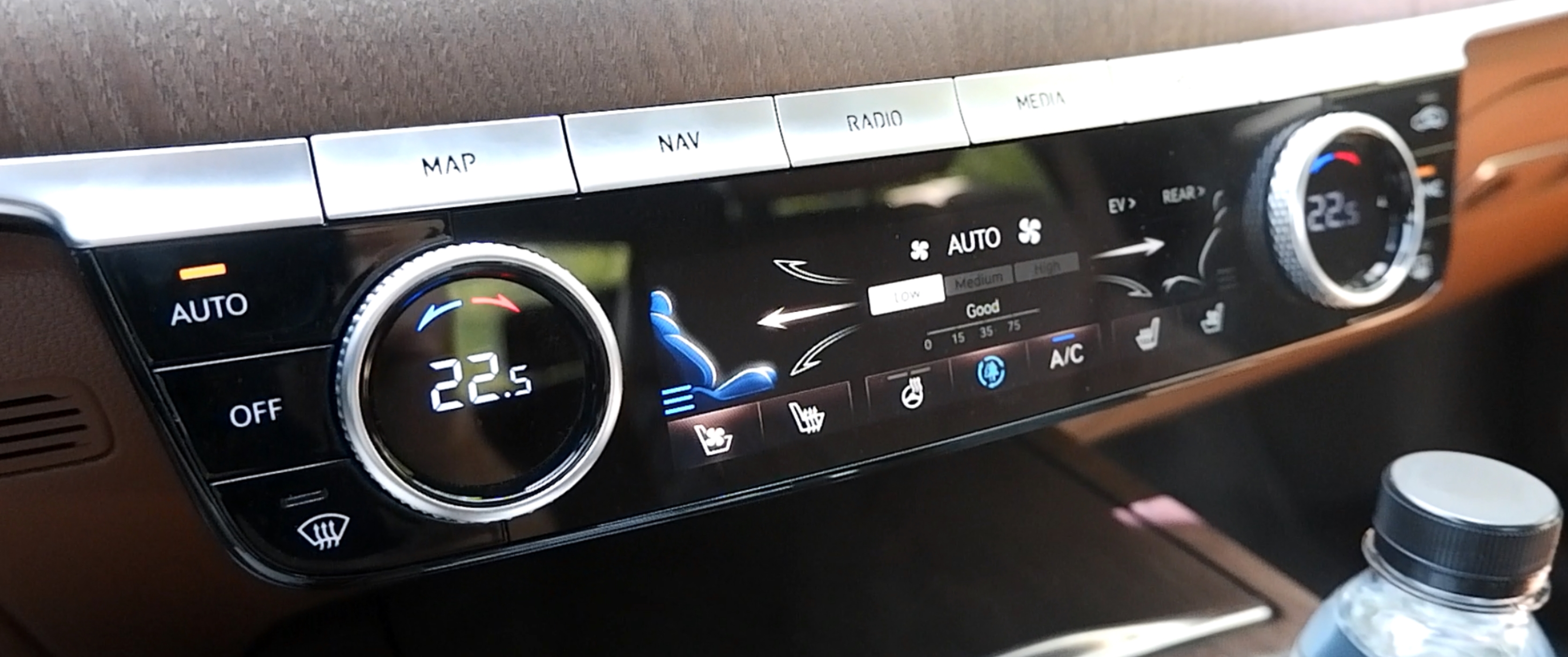 아래에 터치 방식으로 공조장치를 운영할 수 있다.