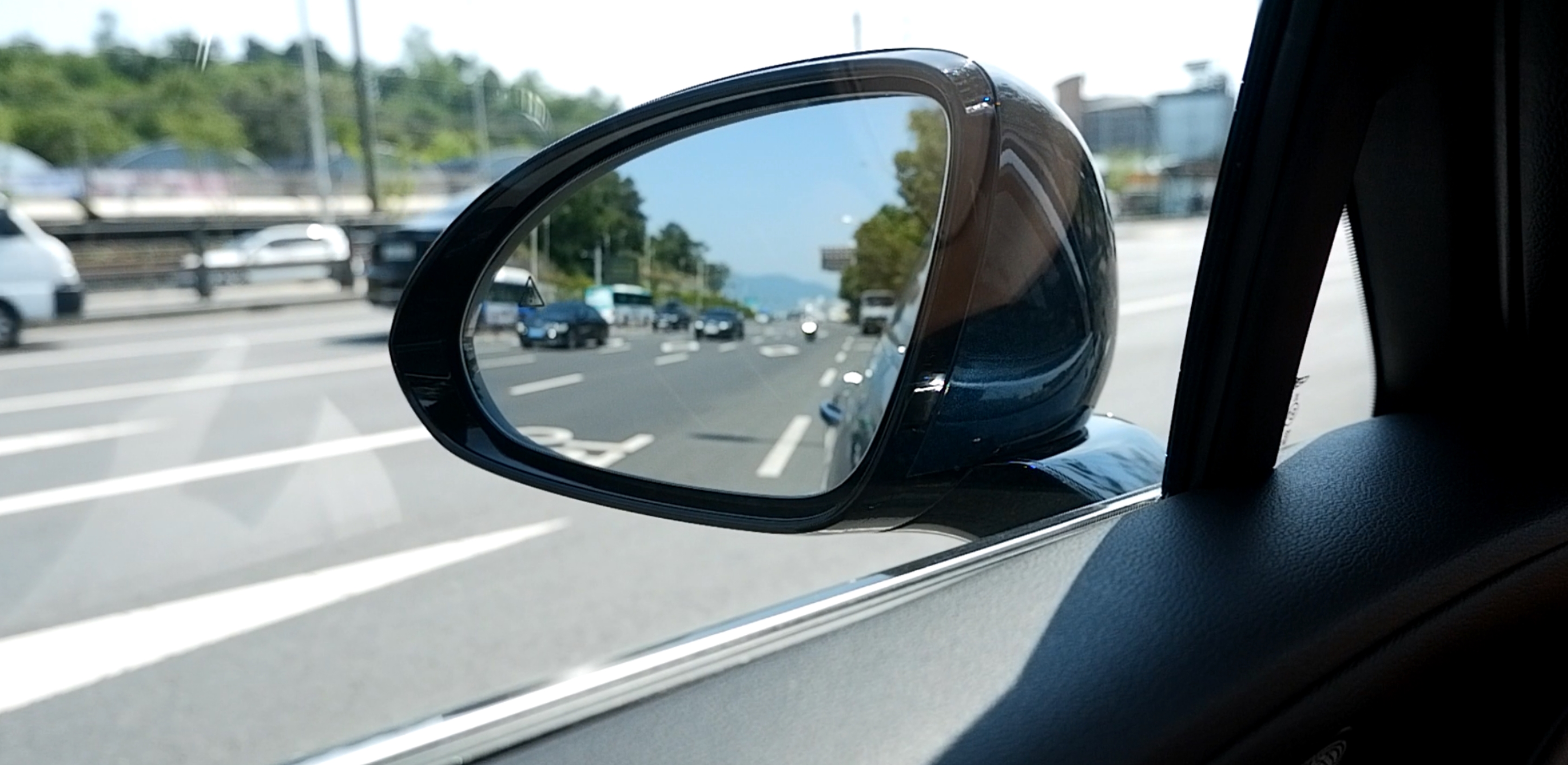 좌,우 사이드미러의 크기는 적당하며 A필러와 미러사이에 유리로 되어 있어