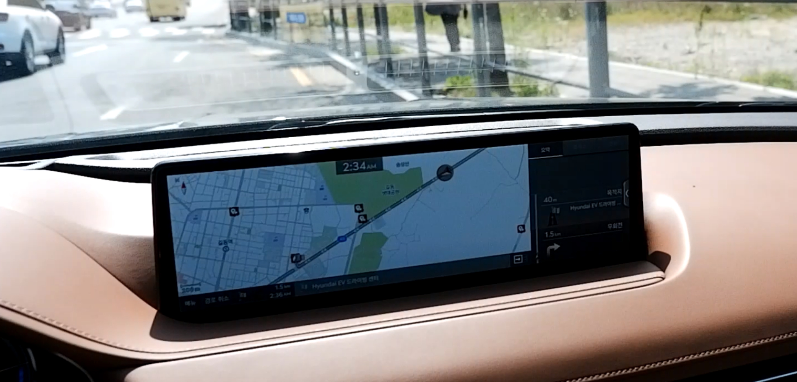 또한 옆에 위치한 12.3인치 대형 네비게이션또한 큼지막하게 지도를 보여준다.